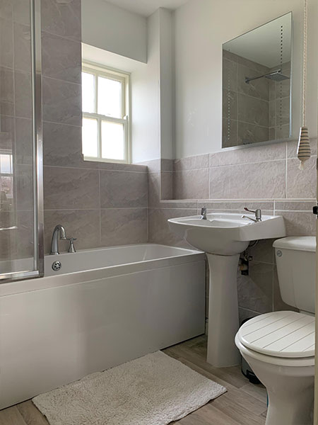 Bathroom with Shower/Bath, W.C., Hand basin, 3 Bedrooms, 1 double, 1 twin, 1 single.